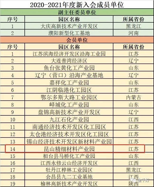 6月2-4日,2021中国化工园区与产业发展论坛召开。2日举行的国家新型工业化产业示范基地(化工类)联盟暨中国石油和化学工业联合会化工园区工作委员会工作会议同意增补19家单位为园区委成员单位,位于千灯镇的昆山精细材料产业园位列其中。