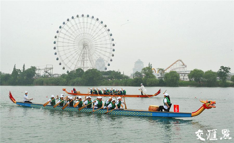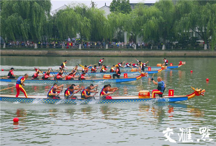 ▲6月14日,“运河竞渡 水韵姑苏”大运河端午龙舟邀请赛在苏州胥门护城河段鸣锣开赛。阙明芬 摄