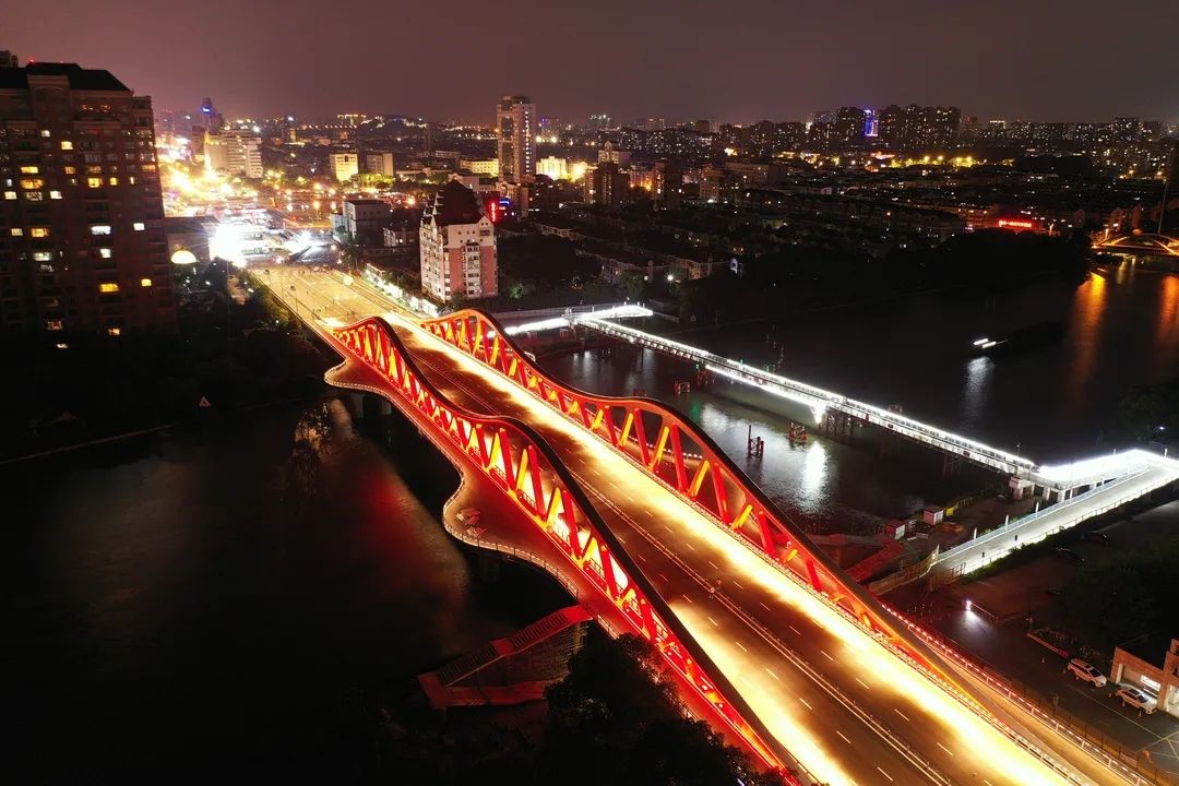 这条贯通东西的大桥,以青阳港夜景为秀场,运用氛围灯光明暗虚实的变化,演绎起翩然婉转的昆曲“水袖”,向往来市民展现了一座活力城市内外兼修的独特气质和全新精神风貌。