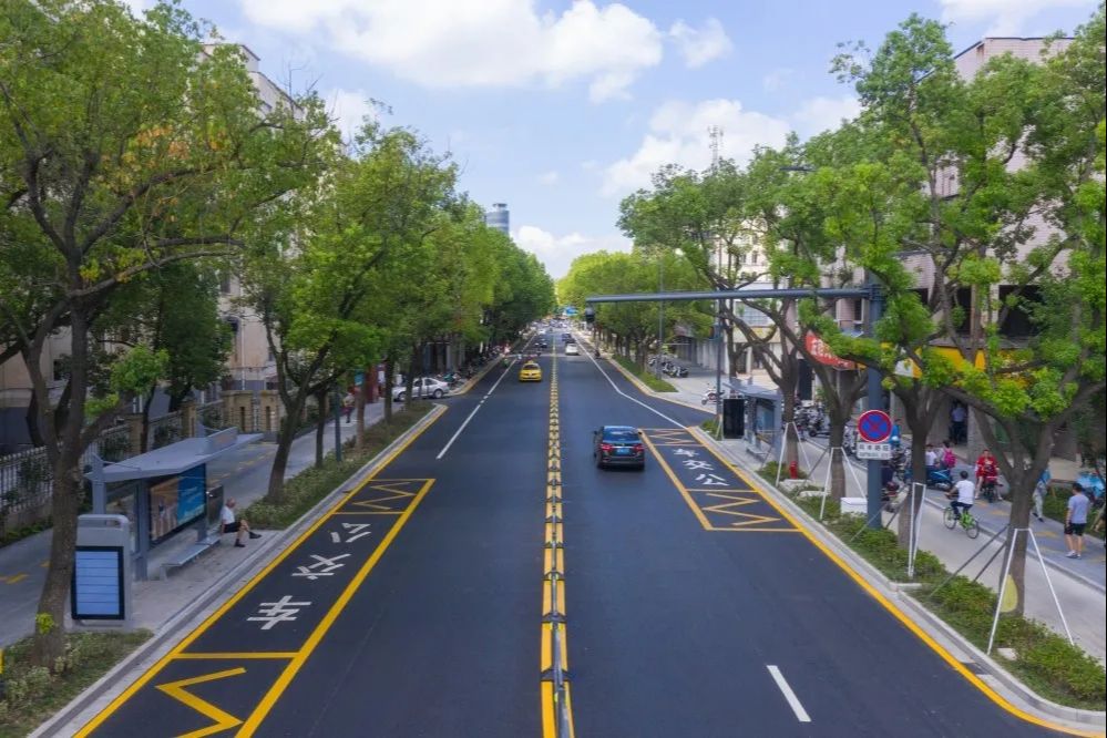 ▲衡山路改造工程西起小澞河路,东至长江路,全长约3公里,是我市道路“黑色化”改造示范工程