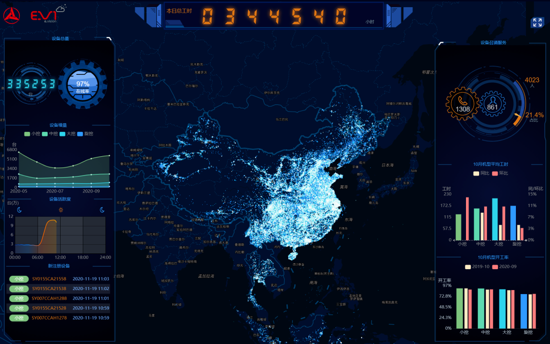 先进技术层出不穷,不断进步。拥有30多万台工程机械设备保有量的三一,每天存储处理的数据容量为200G,一年的数据量达70T左右,在线处理速度更是要求达到秒级。如此庞大的数据量摆在面前,汤斌斌不但没有退却半步,反而更加斗志昂扬。“依据公司数字化转型升级部署要求,我们自主研发了易维讯APP,可以将大数据平台分析的数据实时呈现给用户,同时还具备在线服务、论坛、AI助手、二手机平台、出租平台等增值服务。”汤斌斌介绍,我国工程机械行业对大数据和互联网的应用起步较晚,能借鉴的实例、经验都很少。为了解用户需要,在开发APP时,他和同事常常顶着烈日、冒着高温,深入工地调研了解情况。“对我们这些常年坐在办公室里的“程序猿”而言,每次下工地回来就像脱了一层皮一样,但没有人抱怨一句。为加快进度,大家还常常通宵工作,人手一个折叠床,累了困了就眯会儿,醒来继续干。”汤斌斌笑着说。截至目前,APP上的注册用户超29万人,认证设备近33万台,服务订单超165万单。