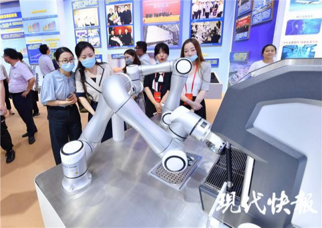 " 百年征程 初心永恒——中国共产党在江苏历史展 " 自 7 月 1 日开展以来,受到社会各界广泛关注。7 月 13 日,现代快报记者探访了最具科技范儿的 " 经济发展高质量 " 展台。在这里," 神威 · 太湖之光 " 超级计算机、暗物质粒子探测卫星 " 悟空号 " 等国之重器的模型集中亮相,还有双臂协作 " 手 " 冲咖啡机器人等带来有趣的互动体验,全方位展现了高质量发展的江苏模样,引来众多参观者点赞。