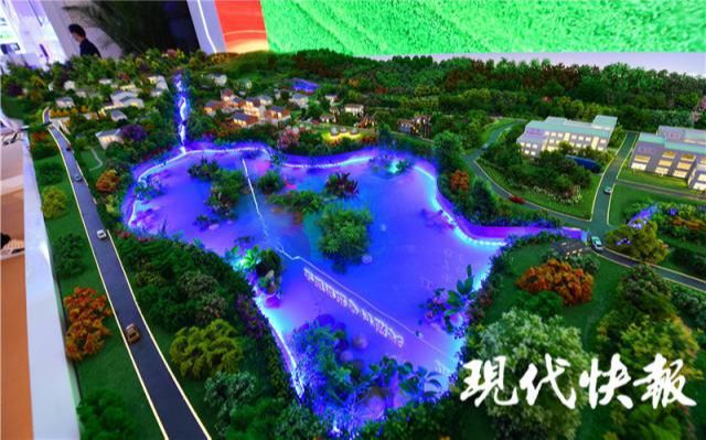 江苏河湖众多,天然的水域资源不仅造就了丰饶的物产,也带来了富足安稳的生活。美丽乡村是美丽江苏的鲜明底色。现场,一个长 10 米、宽 2.5 米的 " 新鱼米之乡 " 图景沙盘吸引众人驻足。