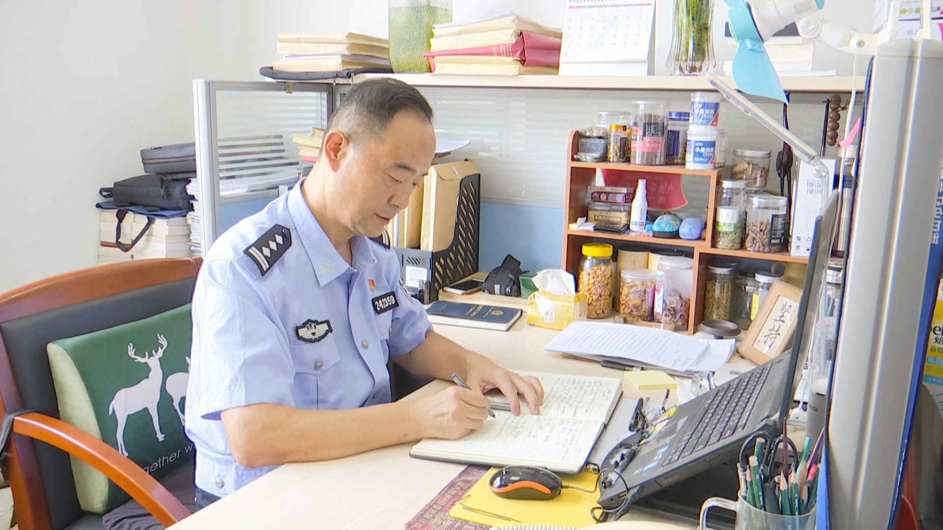 “工欲善其事,必先利其器。”在周志华的办公桌上,文件、信访件、专业书满满当当,“做信访工作仅靠老经验、老阅历是不够的,要多学习相关知识,才能有理、有力、有节说服信访当事人。”近年来,市公安局建立了“信访联席会议制度”“信访工作绩效考核办法”等多项信访工作长效机制,构建了“市局党委统一领导,信访部门协调指导,各部门齐抓共管”的大信访工作格局。在周志华的主导下,各派出所均配备兼职信访员,建立起了“横向到边,纵向到底”的信访工作网络,形成了信访工作“统筹兼顾,标本兼治,事事有人抓,层层有人管”的良好局面,架起了警民“连心桥”。