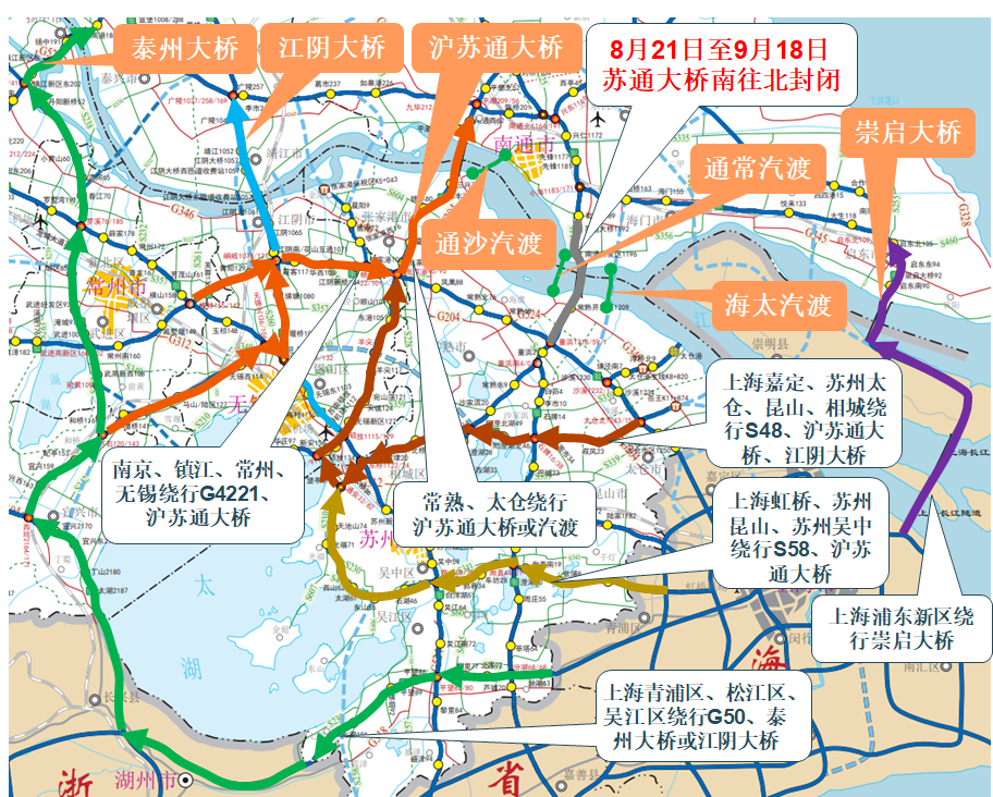 绕行提醒!8月21日零时起苏通大桥部分路段实行临时交通管制