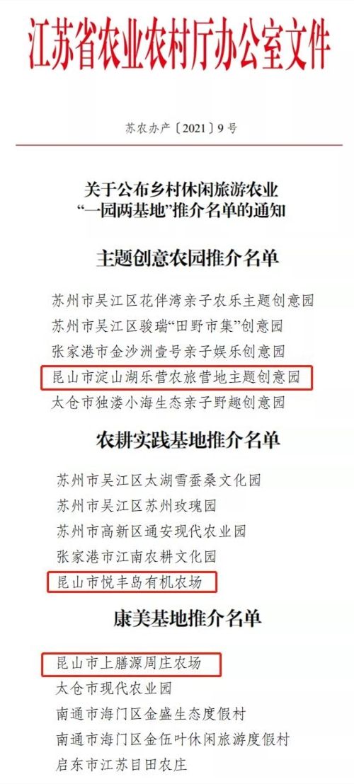 近日,省农业农村厅公布乡村休闲旅游农业“一园两基地””(主题创意农园、农耕实践基地和康美基地)推介名单,我市乐营农旅营地主题创意园入选主题创意农园,悦丰岛有机农场入选农耕实践基地,上膳源周庄有机农场入选康美基地。
