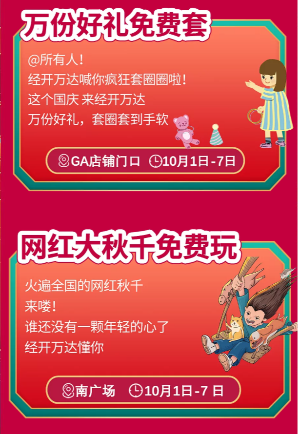 10月1日-10月7日,来九方开启假期正确打开方式,恰美食、看电影、FUN肆嗨玩、购物shopping、抢特价、薅羊毛多重好礼已经备齐!