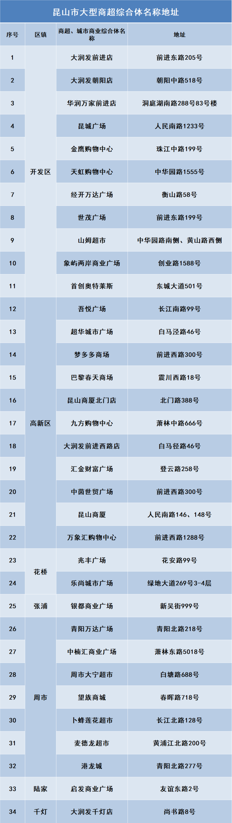最后,小昆为爱购物的你整理了一份昆山各大商超地址假期快冲鸭!