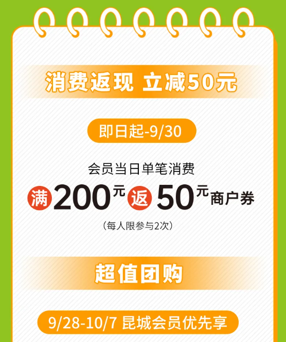 会员活动:会员单笔现金实付,满800返1000