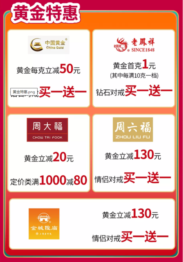3.黄金至高克减88元,镶嵌7折起