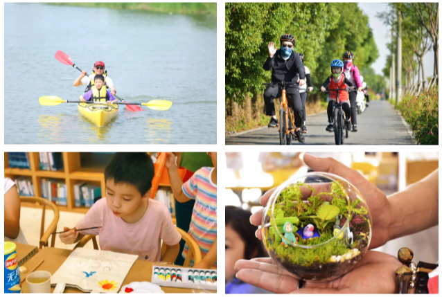 尚明甸村还为住村客人提供特色活动体验,除了皮划艇、亲子骑行等户外运动项目,还有帆布包手绘、微景观DIY等特色手作活动,并与锦溪计家墩理想村联动,实现两村活动互通。