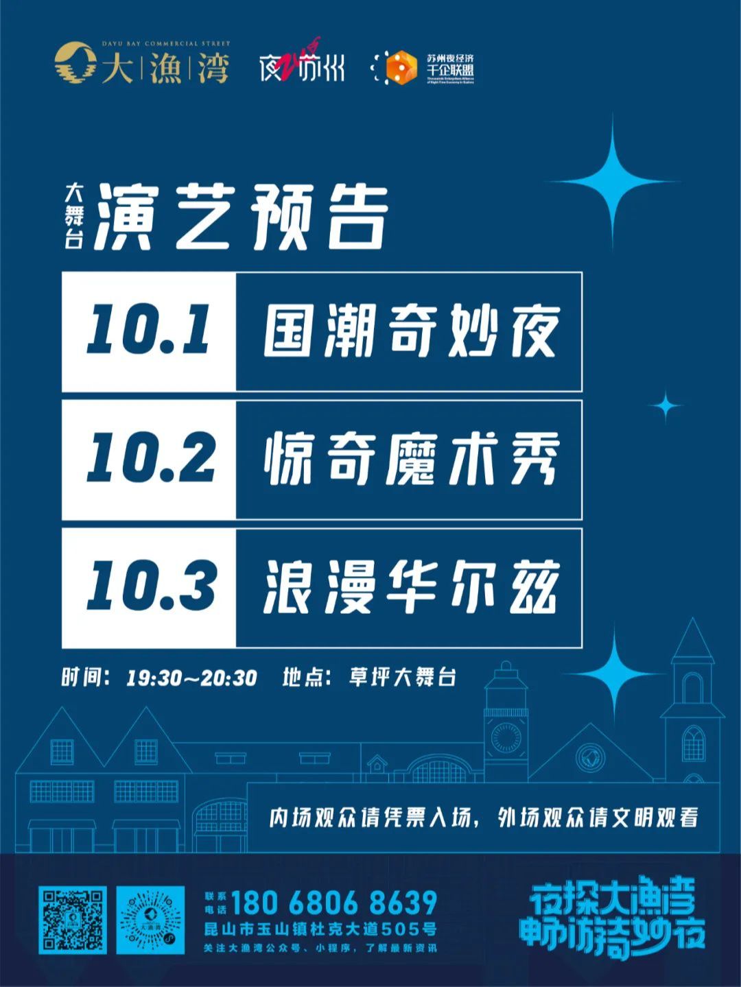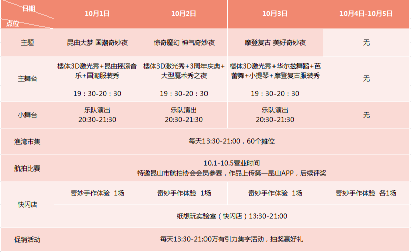10月1日-10月5日,将举办“三周年庆典活动”,本次大渔湾周年庆活动主题为“夜探大渔湾,畅游奇妙夜”。