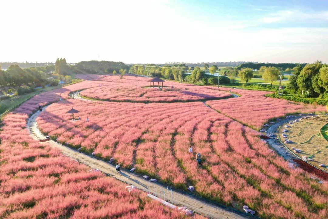 淀山湖花海公园、周庄镇双庙村和万三酒庄都种植了粉黛乱子草,如今正是最佳观赏期,大片大片的粉黛乱子草将大地染成一片粉色。