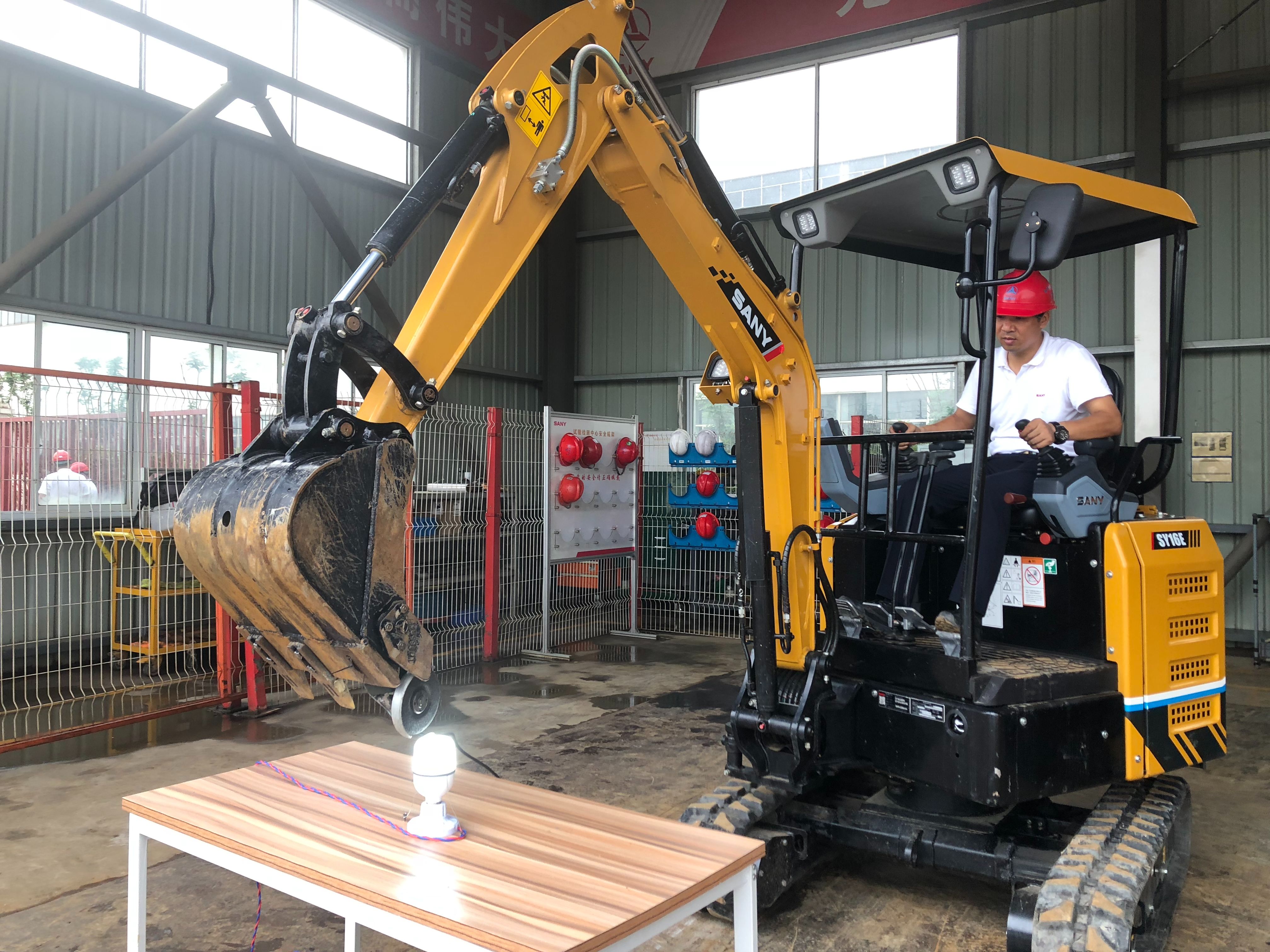 10月13日,张小成在三一重机有限公司测试场地表演了灯泡上切钢丝的绝活儿。只见他先将一截直径2毫米左右的钢丝固定在白炽灯上,钢丝距离灯泡约0.5厘米,随后把一个砂轮切割机捆绑到挖掘机手臂上。打开灯泡和砂轮切割机开关后,张小成开动了挖掘机,将挖掘机手臂不断靠近钢丝,随着火花四溅,只听“啪”地一声,钢丝被切断,而灯泡毫无损伤,整个过程干净利落。随后,张小成还表演了飞跃障碍物的绝活儿。张小成告诉记者,为了让客户进一步了解挖掘机的极限可能和神奇妙用,他经常驾驶挖掘机表演走钢丝、过单边桥、写毛笔字、开啤酒瓶、向矿泉水瓶中投硬币等绝活儿。