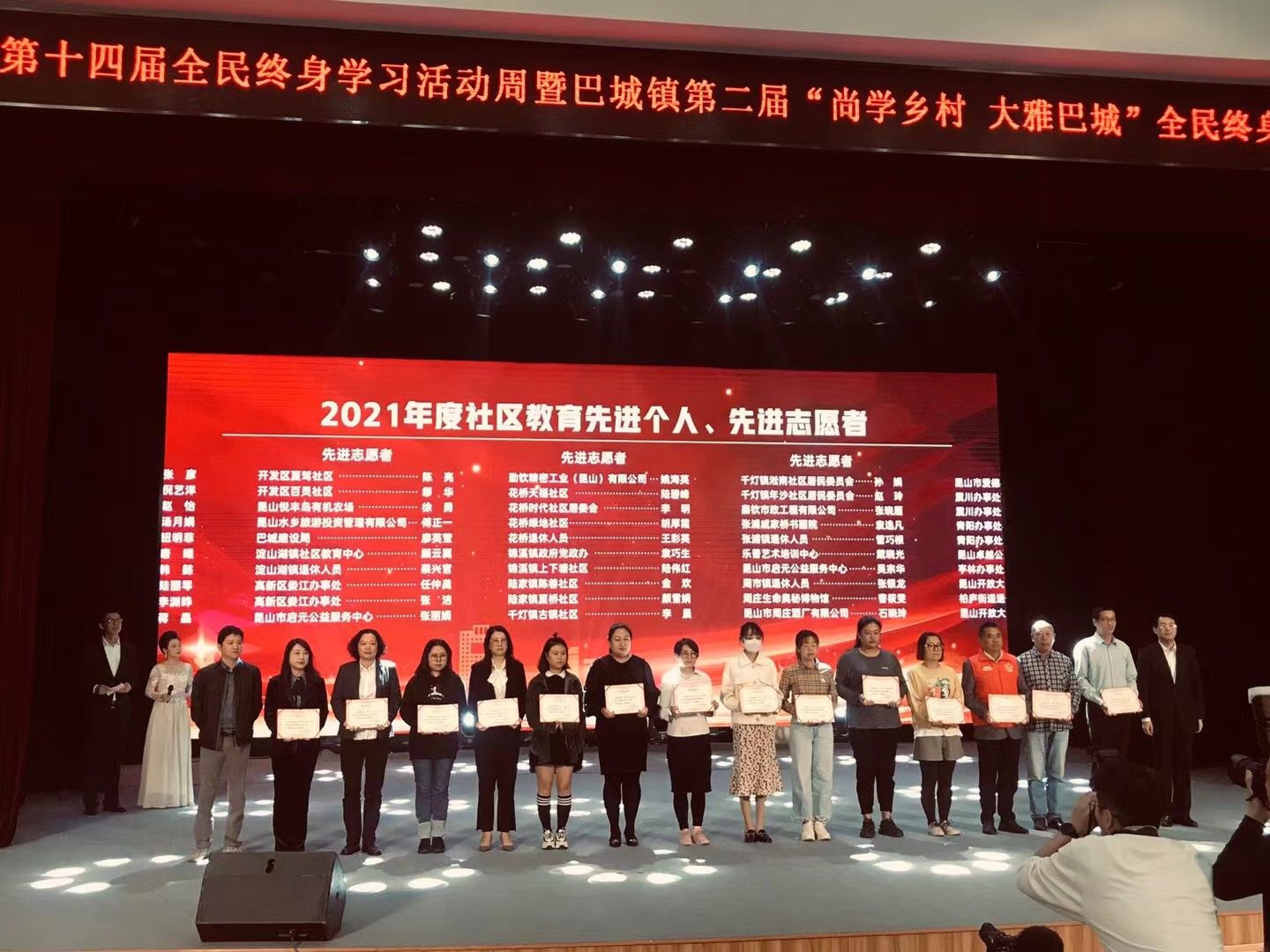 现场,主办方还为2021年昆山市社区教育教师教学能力大赛获奖者颁奖,并表彰了一批昆山市学习型单位、学习型社区、学习型团队代表以及昆山市社区教育先进个人和单位、社区教育优秀志愿者代表;包含阳澄湖大闸蟹产业园、阳澄讲堂、昆北民歌工作室等巴城镇首批乡村振兴现场教学点代表获得授牌;巴城镇乡村振兴教学点“阳澄讲堂”乡村振兴专题培训项目、市智慧助老微课程及第二批市民终身学习体验基地地图发布。
