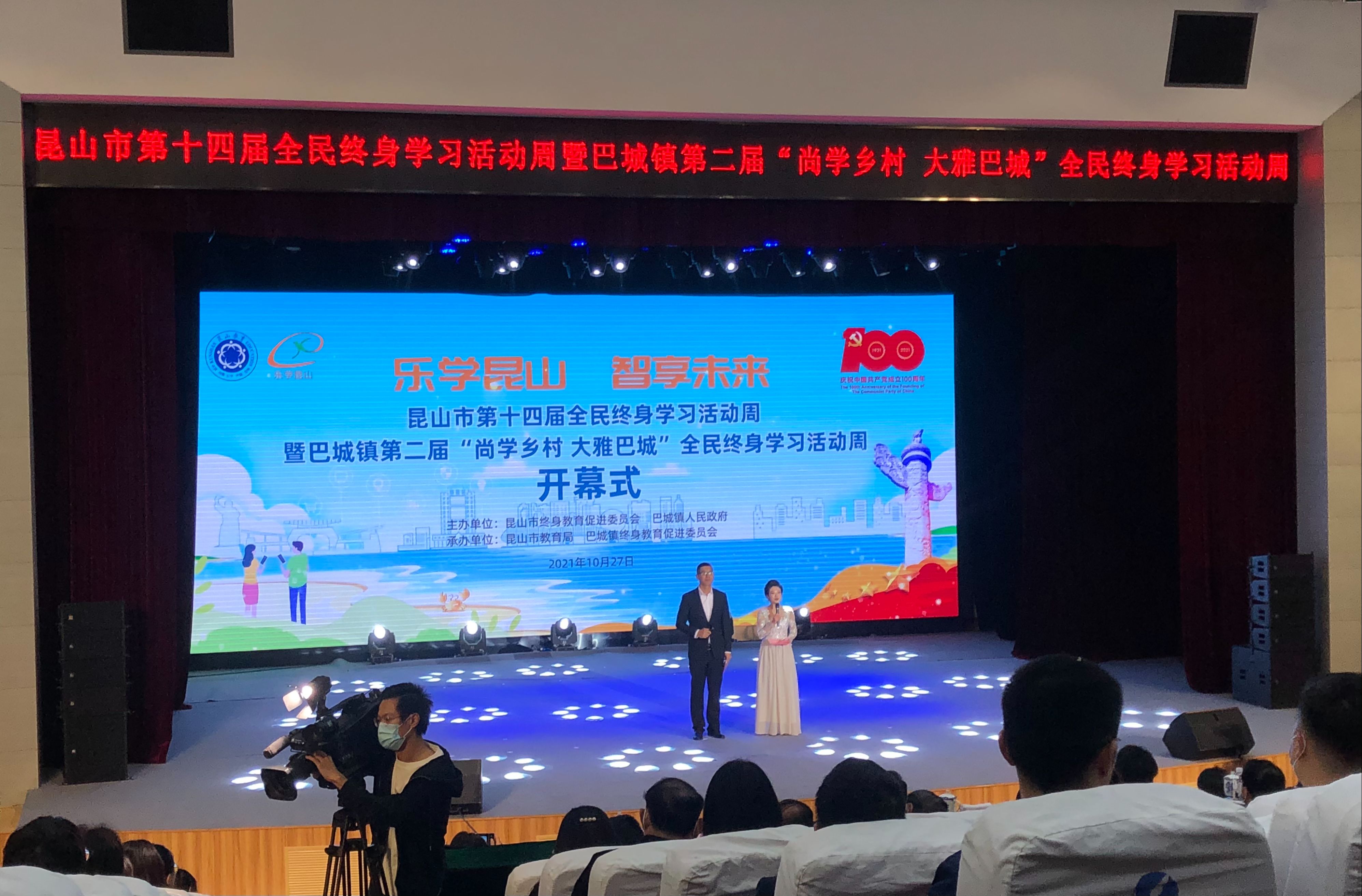 10月27日上午,以“乐学昆山 智享未来”为主题的昆山市第十四届全民终身学习活动周暨巴城镇第二届“尚学乡村大雅巴城”全民终身学习活动周在巴城镇文体中心开幕。