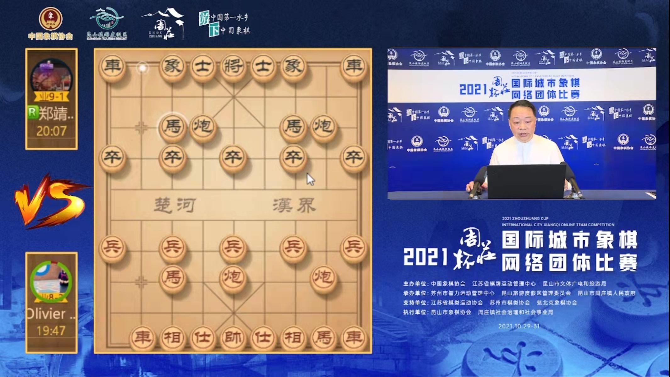 10月30日上午,为期两天的2021年“周庄杯”国际城市象棋网络团体比赛在“天天象棋”“快手@中国象棋协会”“抖音@中国象棋协会”等平台举行,吸引包含加拿大、日本、马来西亚、菲律宾、越南以及我国在内的6个国家、8 座城市的32 名棋手共赴“象棋之约”。比赛还邀请知名专业象棋大师担任解说嘉宾。
