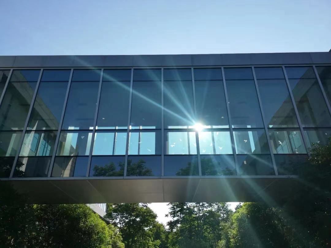 自2019年起,李彬彬博士就带领昆山杜克大学的学生们开始了校园鸟撞的调查。在分析调查数据的基础上,项目团队在校园鸟撞发生频率较高的学生宿舍玻璃回廊处张贴了防鸟撞贴纸。半透明的贴纸不仅有效减少了鸟类撞击玻璃的频率,更为宿舍回廊增添了一份趣味。同时,项目团队还与学校本科生合作,对另一处鸟撞高发区——校园湖心亭进行了装饰布置,以期增强鸟类对玻璃的辨别能力。此外,项目组还影响了二期校园的设计,主要体现在减少大面积玻璃幕墙的使用、对大面积玻璃幕墙采取特殊处理、对连廊部分进行针对性设计三个方面。