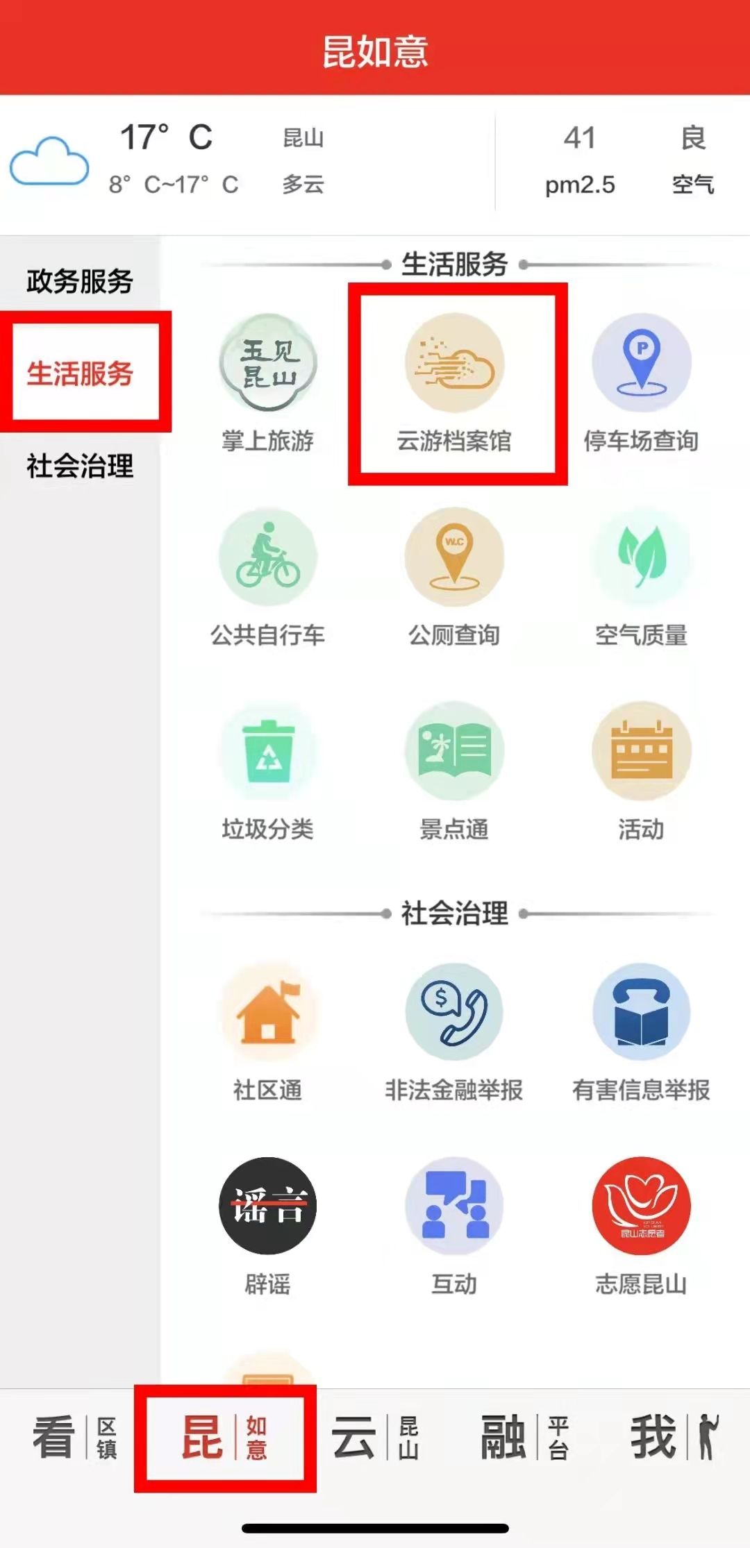 打开“第一昆山”APP,点击下方“昆如意”,选择“生活服务”板块,进入“云游档案馆”,市档案馆VR全景展厅映入眼帘。在这里,观众只需“跟随”着引导箭头,就可以通过三维场景、程序交互,随时随地沉浸式观赏“玉出昆冈——昆山历史文化档案陈列展”“星光璀璨 照耀桑梓—昆山籍两院院士与将军风采展”“建党百年 初心如磐—长三角红色档案珍品展”三大展览。同时,市档案馆还将音乐、图片、视频等元素嵌入其中,将实体展览数字化,让档案陈列、档案珍品活起来。