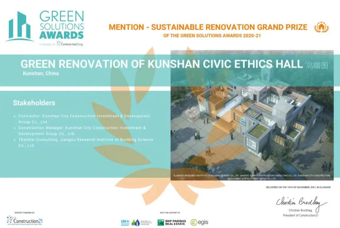 昆山公民道德馆既有建筑绿色化改造项目获国际大奖