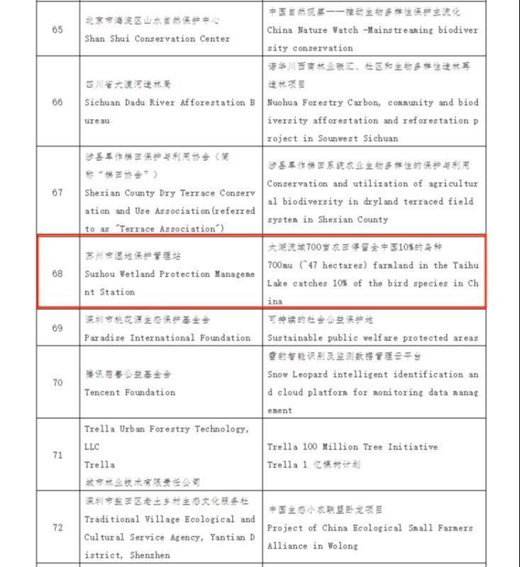 自《生物多样性公约》第十五次缔约方大会领导人峰会召开后,“生物多样性”成为全球热词,而保护生物多样性的昆山经验也引起了社会关注。前不久,天福国家湿地公园实施的《太湖流域700亩农田停留全中国10%的鸟种》项目,从全球26个国家的258个申报案例中脱颖而出,成功入选“生物多样性100+全球典型案例”名单,成为全国4例入选案例之一、苏州唯一入选案例。