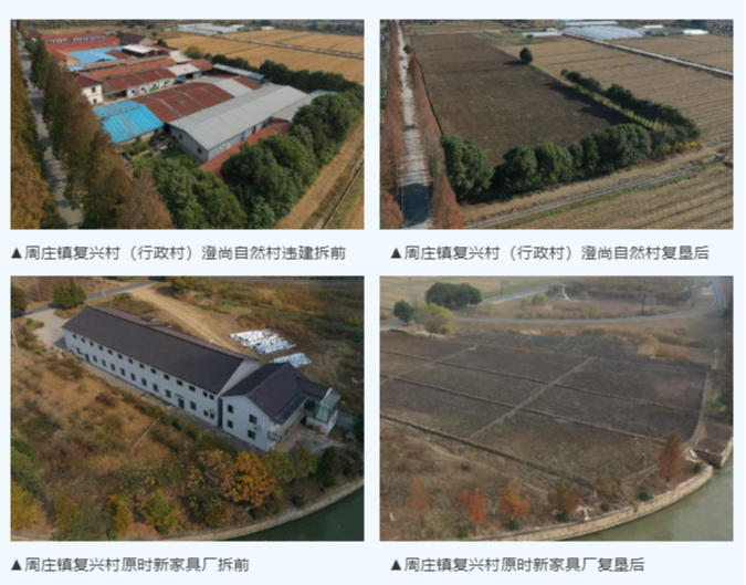 为此,周庄镇结合农村人居环境整治工作深入推进违法建设治理,通过“鹰眼VR系统”精准分析每个地块现状,针对前期摸排发现的无审批手续违规占用集体土地类违法建设,采用拆除、平整、复垦等举措,在拆除违法建设的同时优化农业用地结构布局,有效增加耕地面积。近年来,全镇共拆除占用集体土地违法建设4处,面积3.1万平方米,拆除后腾出土地48.365亩,经复垦验收后现已全部纳入村耕地范畴。