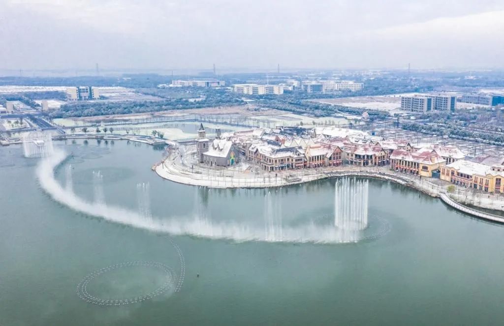 大渔湾拥有苏州地区首个裸眼3D高清激光秀、首个大型声光水艺秀,以昆曲人文元素为底蕴,凭借其中西合璧的建筑造型,营造亮点纷呈的高品质人气湖滨风情。湖光水色、红墙斜顶,在璀璨的灯光映射之下,大渔湾更显得灵动曼妙。