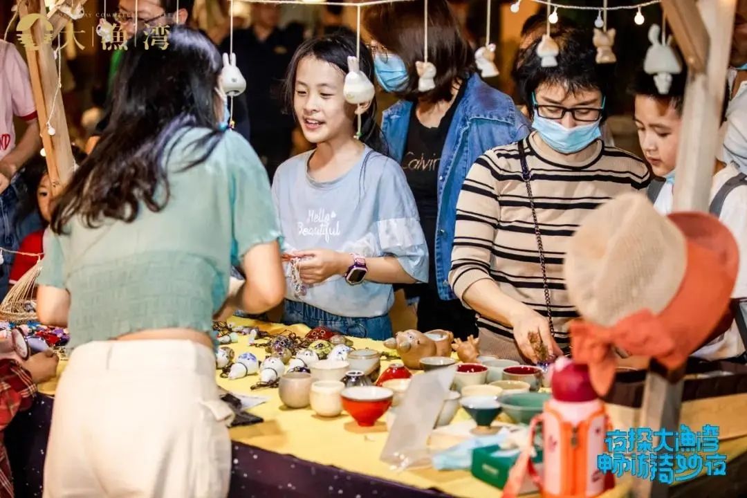 大渔湾依托昆山深厚的历史底蕴和丰富的文化资源,成功打造“渔湾市集”这一夜间商业IP,结合国潮优品、文玩古物、精致饰品、文创手作,将本地周边城市优秀手作品牌、文创品牌聚集一堂,打磨昆山“文艺之夜”新 IP,彰显集聚区独特的人文魅力。