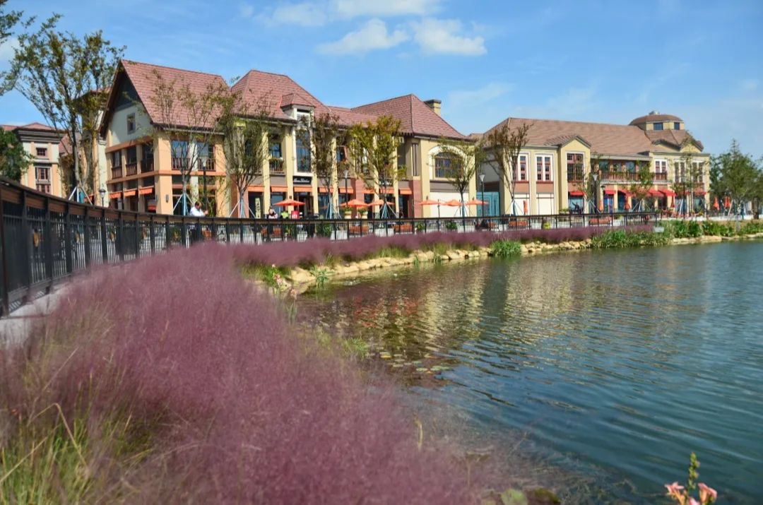 湖畔的粉黛乱子草随风轻晃,空气中多了几分浪漫。