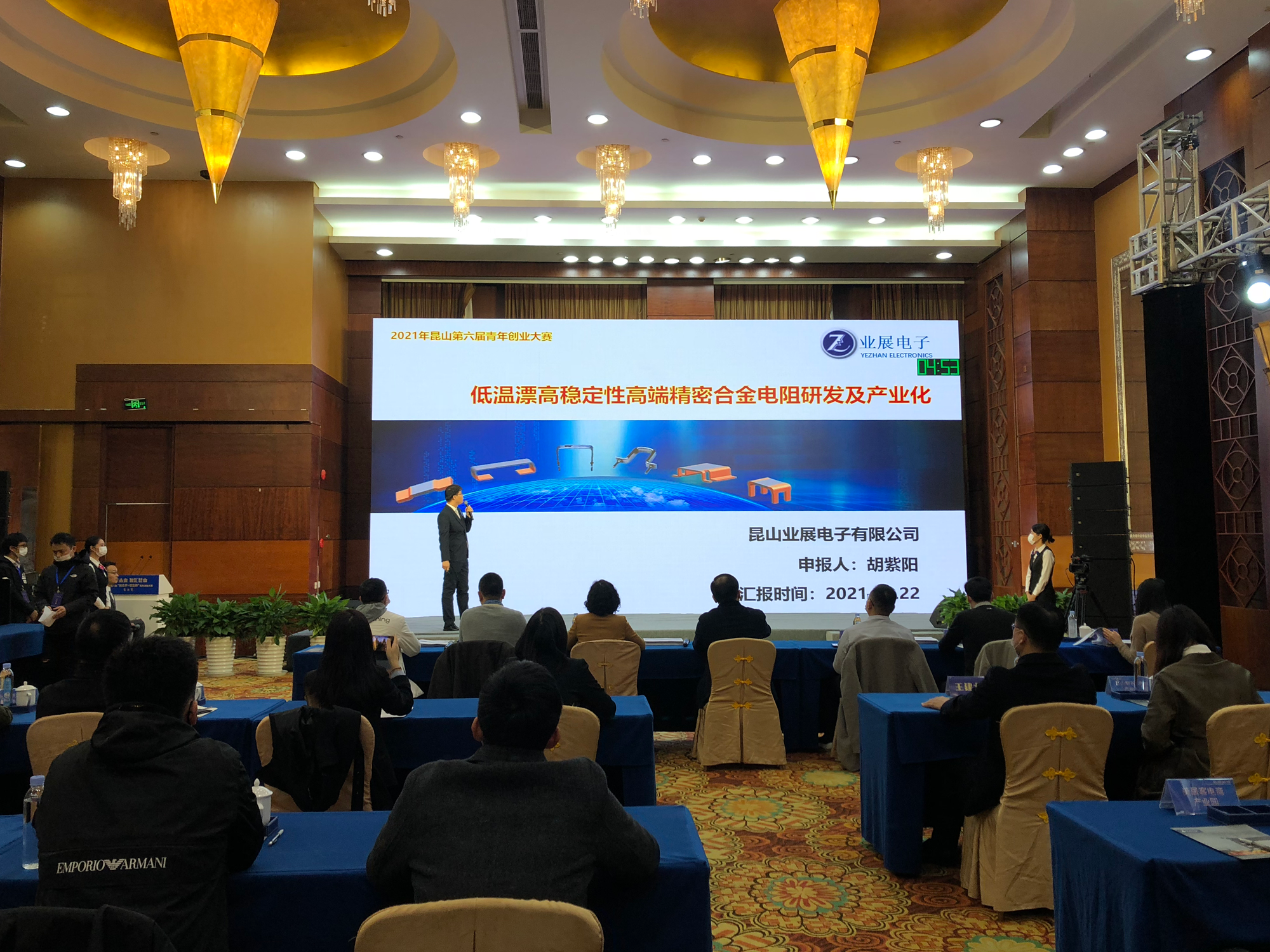 在决赛现场,首个登台的创业项目是“低温漂高稳定性高端精密合金采样电阻研发及产业化”。“精密合金电阻广泛应用于家用电器、工业能源、汽车电子等领域反馈电路中,目前国产自主品牌缺失,我们设计的低温漂、高精度、高稳定性精密电阻性能比肩国际一流品牌,并在部分领域实现超越。目前,公司申报专利30余件,授权7件。预计2025年市场需求超过1000亿美元。”该项目负责人胡紫阳采用PPT现场陈述的方式,展示团队实力、项目背景、核心技术以及运作模式等。紧接着,台下的专业评委逐一提问,就项目的运作模式、优势特点等方面与参赛者互动,并现场打分。随后,其他13名选手通过线下或线上的形式轮流登场,阐述项目的可行性和创新创意。经过三个多小时的紧张比赛,最终,“Wi-Fi6射频前端模组芯片以及关键技术的研发与产业化”项目荣获一等奖;“江峰微特——航空发动机精密微孔智造领跑者”项目、“低温漂高稳定性高端精密合金采样电阻研发及产业化”项目荣获二等奖。中国农业银行昆山分行还为创业者提供了授信支持。
