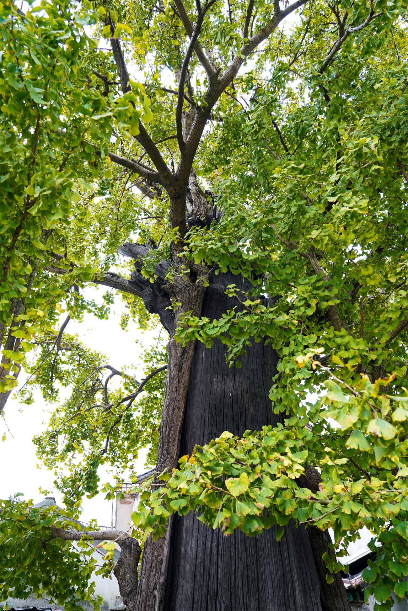 这是人与自然和谐相处的美好时代。村里的老人讲起这棵古银杏,总有说不完的故事:独自抵抗着天灾人祸,曾数度遭遇雷击,粗壮的枝干被截断,从断裂处再现生机……而今,绿化养护机构定期查看它的长势、病虫害等情况,春天为它修剪萌蘖枝条,夏天为它补水、清理野草杂物,秋天为它杀菌杀虫,冬天为它翻土施营养。