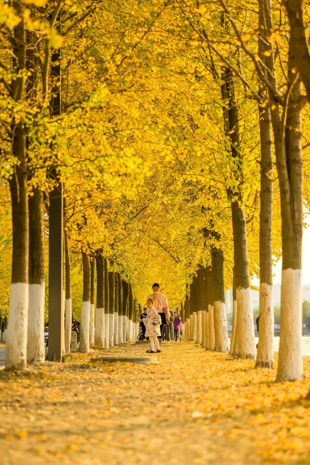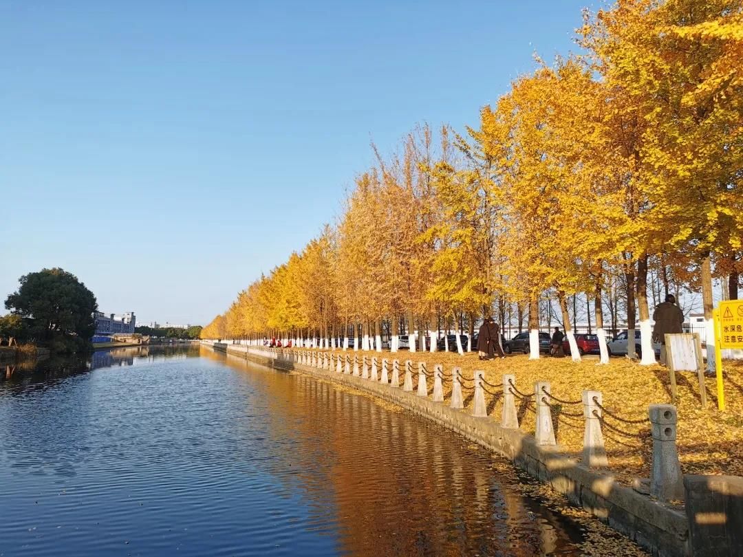 一到初秋,两侧的银杏树叶变得金黄,深秋时候,树叶飘落铺满地面,将秋意展现的淋漓尽致,此时的黎明路会引来各地的游客前来打卡拍照,由于游客的增多,花桥在网红路段的河驳岸上安装了350米大理石护栏,保障游客人身安全。