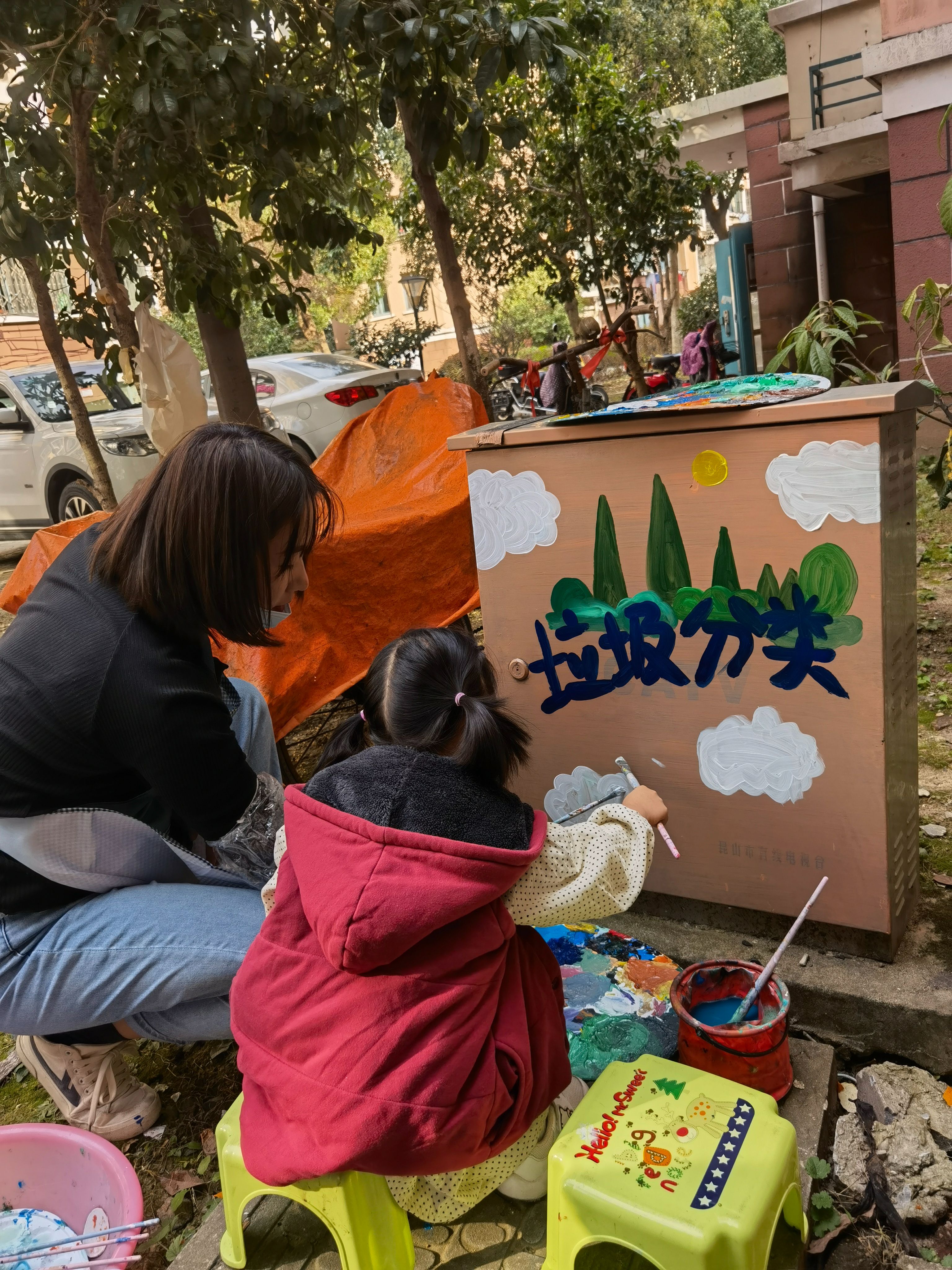 千灯镇马景园小区:卡通手绘画助力垃圾分类宣传