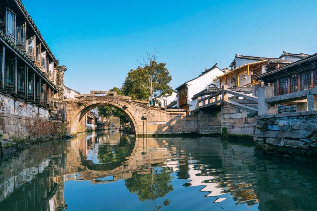 ▲双桥:位于周庄古镇,是永安桥和世德桥的合称, 始建于明万历年间,经历多次重修。双桥至富安桥之间的沿河两岸分布着多座古建筑,是明清时期周庄经济繁荣的代表作,现为江苏省文物保护单位。