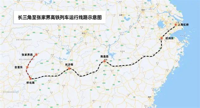 中国铁路上海局集团有限公司发布消息,12月6日,张家界至吉首至怀化高速铁路(以下简称张吉怀高铁)开通运营。当日起,上海虹桥—张家界西G1369/68次列车正式开行;次日起,上海虹桥—张家界西G1369/68 G1367/70次列车双向开行。这也是长三角地区至张家界开行的首对高铁列车。