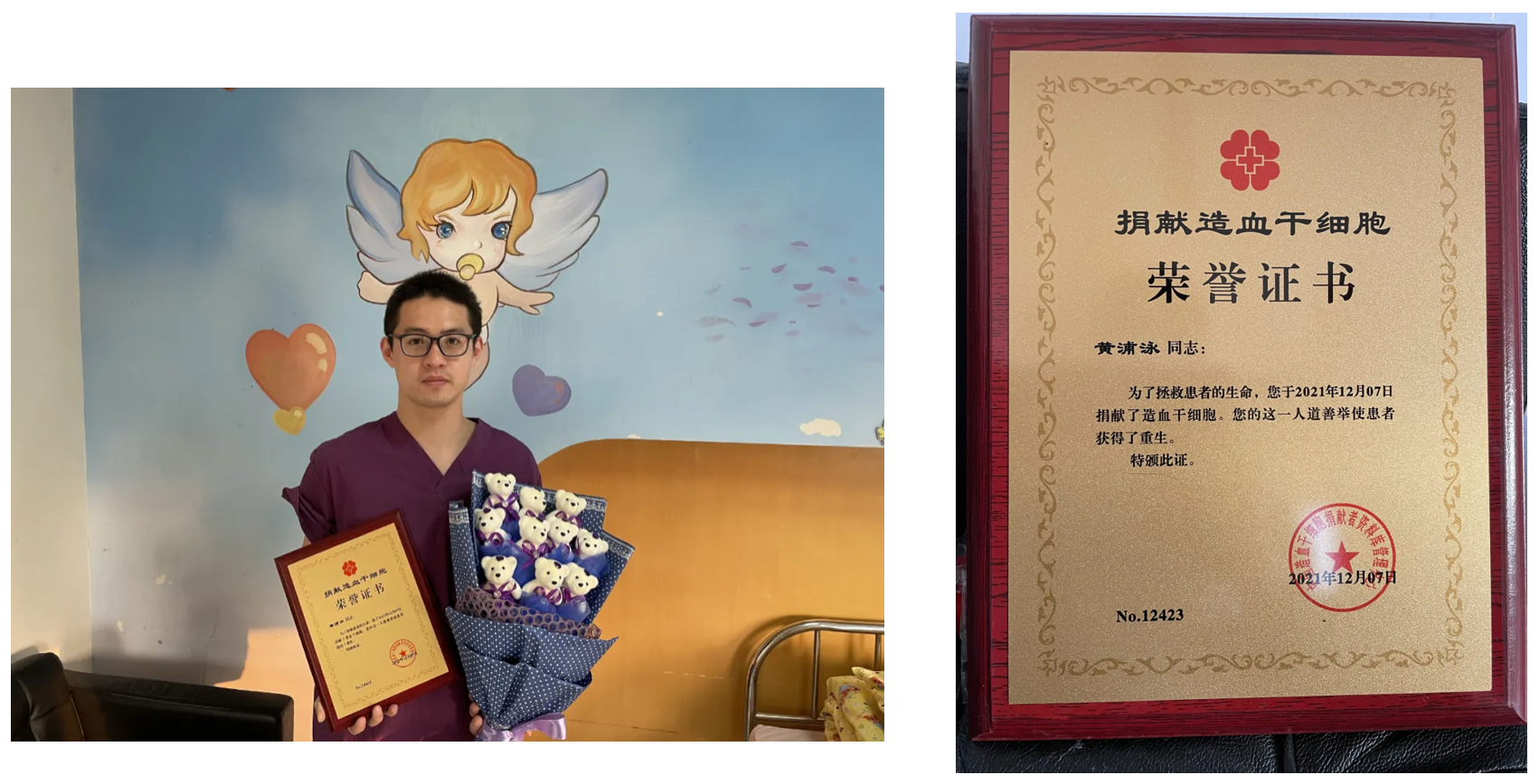 黄浦泳说:“得知匹配成功后,我心情非常激动,能用自己的造血干细胞去拯救一条生命,是一件非常光荣、伟大的事情。”