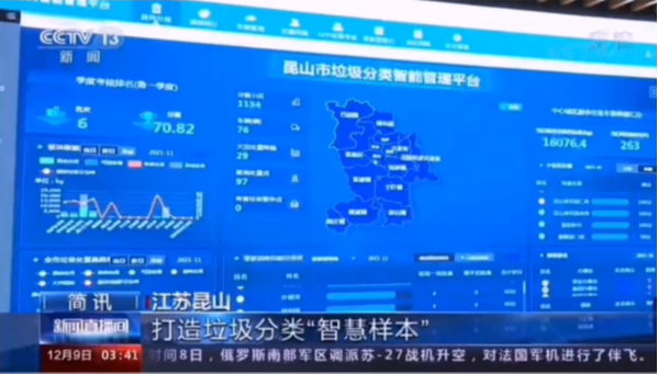 12月9日,央视13套《新闻直播间》栏目聚焦昆山垃圾分类信息化管理体系建设。
