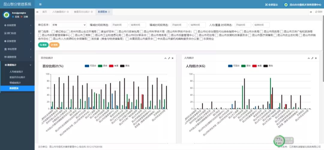 一个平台就能实现党政机关生活垃圾的智能化分类管理、可视化数据统计、精准化溯源监督?是的,这就是昆山党政机关生活垃圾分类智慧平台,一个依托智能终端感知设备实现垃圾自动称重,利用“二维码”扫码投放方式精准追溯责任单位,将信息采集贯穿“分类、投放、收运、利用”四个环节的智能化生活垃圾分类归集平台。