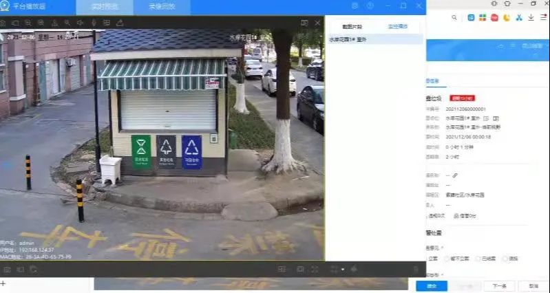 同时,完善信息化监控平台,前端点位采用“红外感应+智能识别”手段,自动识别并抓拍非投放时间乱扔垃圾的违法行为,还可以实现远程喊话、证据回放、任务派遣等多项功能,为后续的垃圾分类精准溯源、精准宣教、精准分类工作提供信息化数据支撑。