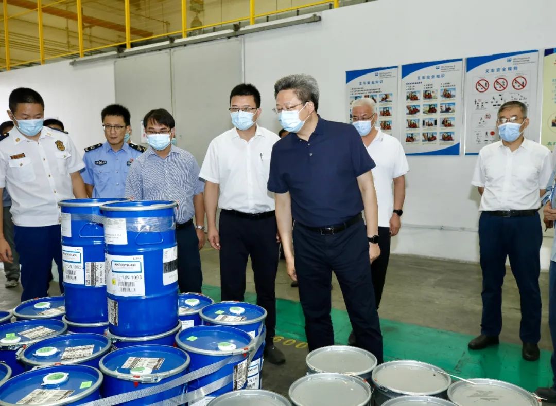 检查中,吴新明一行来到位于陆家镇的庞贝捷涂料(昆山)有限公司。走进危化品甲类仓库,吴新明仔细查看消防设施检查记录,以及声光报警、通风降温、喷淋防爆等装置运行情况,勉励企业常态化进行安全生产演练,积极开展安全生产标准化达标创建,在巩固安全环保基础上壮大市场份额、实现做优做强,为昆山高质量发展作出更大贡献。