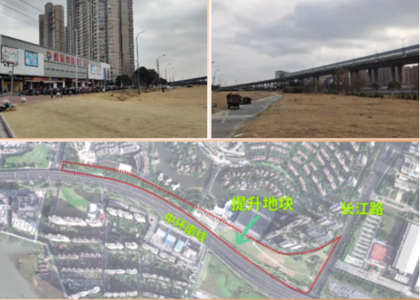 项目位于蝶湖湾商业南侧,中环南线与长江路交界处,改造前,场地绿化单一,车行与人行交通混杂,无法满足周边居民的活动需求,同时,作为重要道路节点,景观效果差。