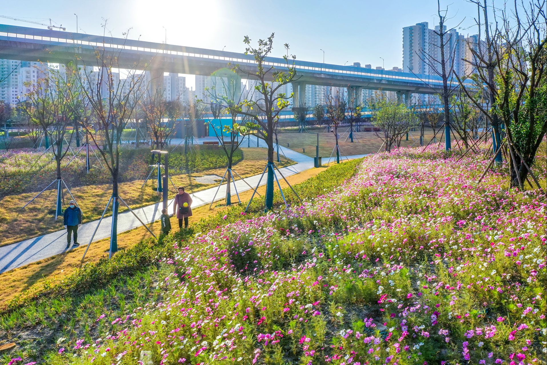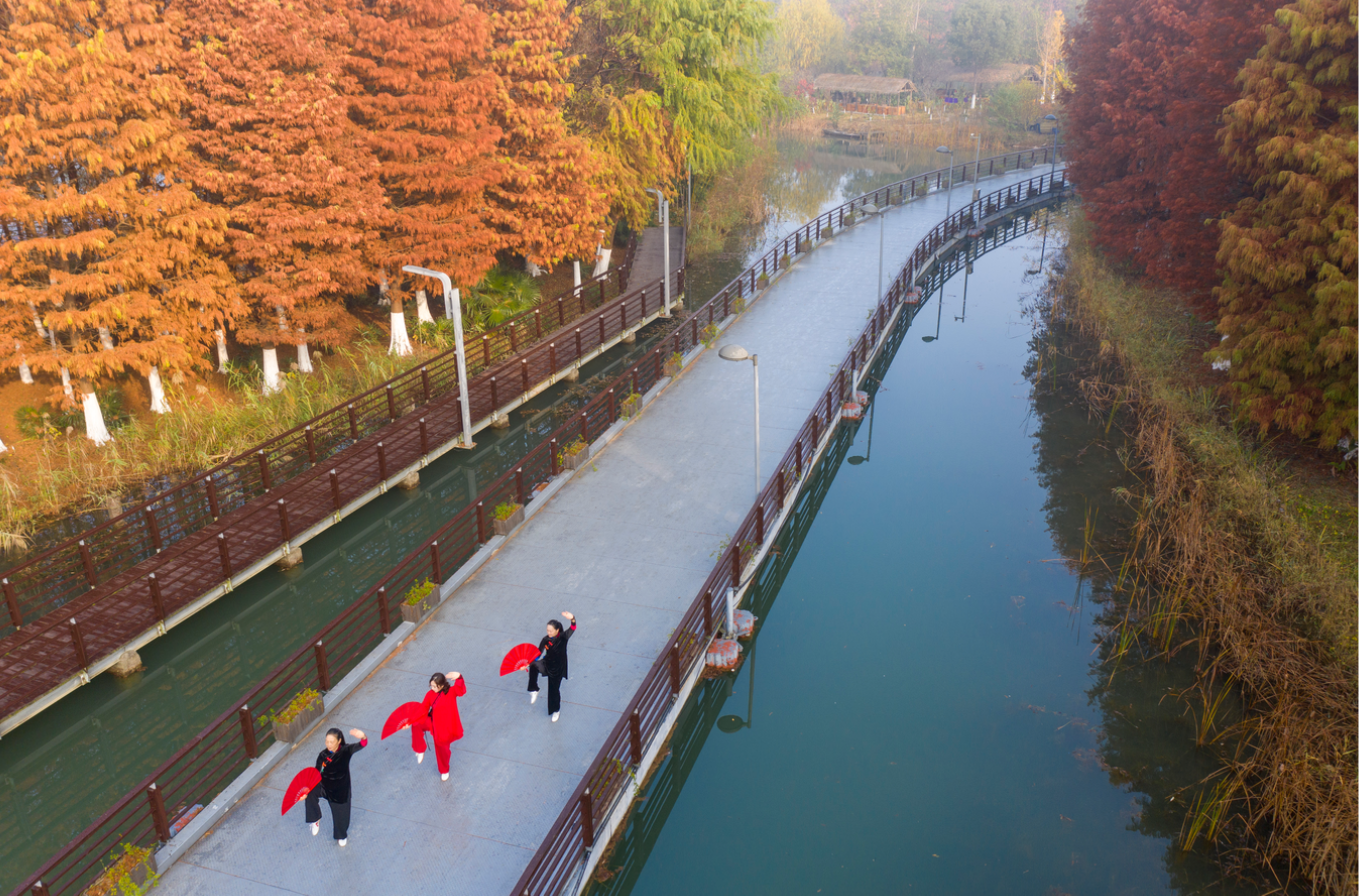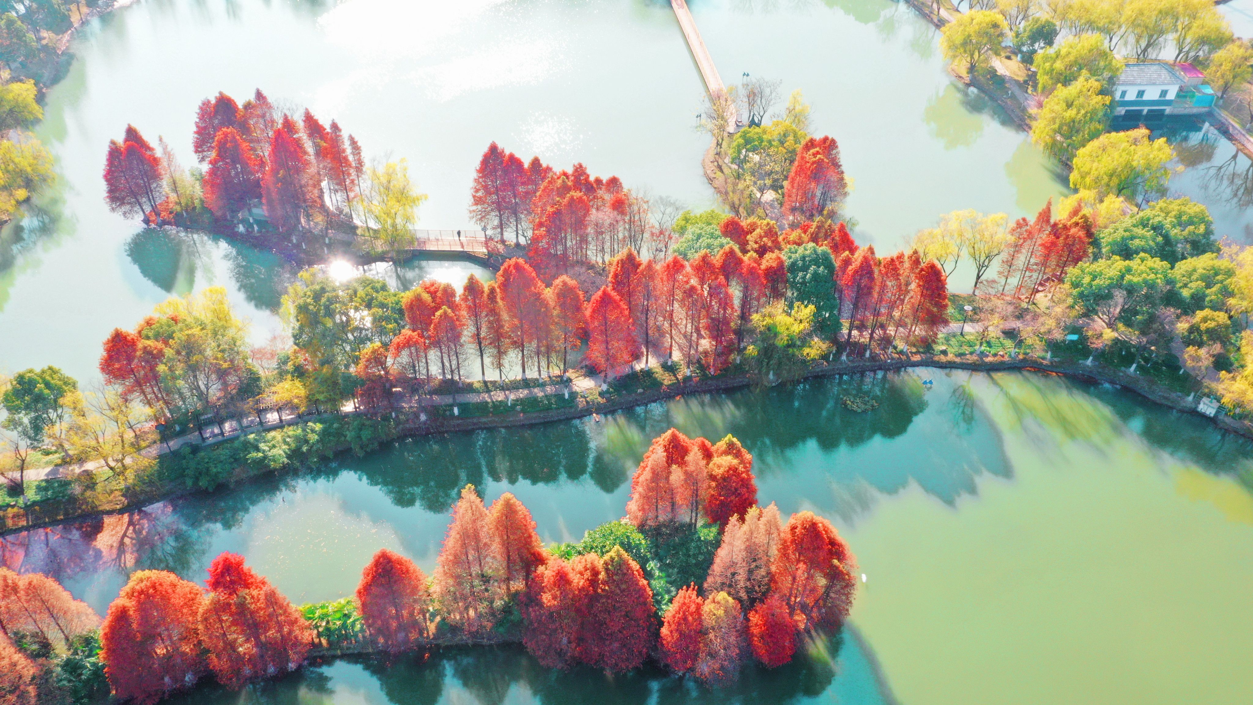 今年的冬日似乎格外温暖和晴朗,使得昆山这座精心打造的“国家生态园林城市”更加明艳动人:景枫公园里,水杉和枫树的叶子陆续变红,深深浅浅、层层叠叠,在蓝天白云的映衬下,犹如一幅油画,安静而浓烈;淀山湖畔,枯黄的芦苇迎风摆动,原本萧瑟的场景,因为清冽的湖水变得明艳动人、因为飞进飞出的鸟群变得生动活泼;夕露园中,蜿蜒的河边小道将自然、田园、园林风景串联在一起,漫步于此,可以感受一步一景的悠闲和熨帖;城市各处“昆小薇”和路边小景内,四季植物搭配得当,健身、休闲设施到位,让“走出家门、步入公园”成为现实……
