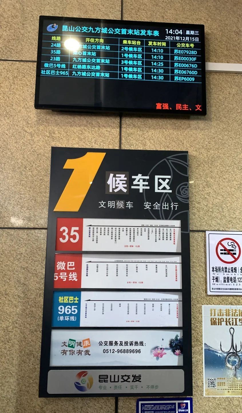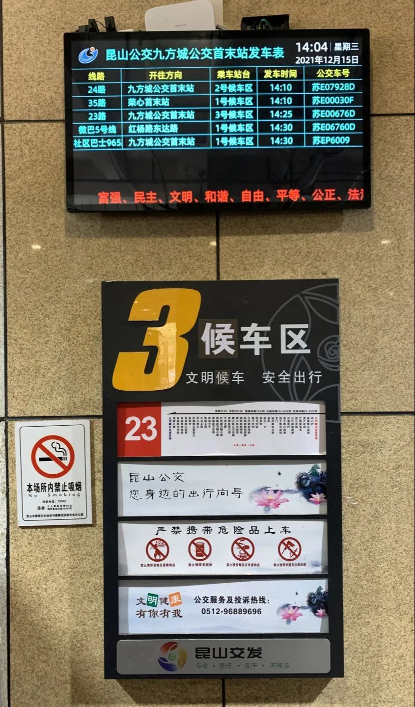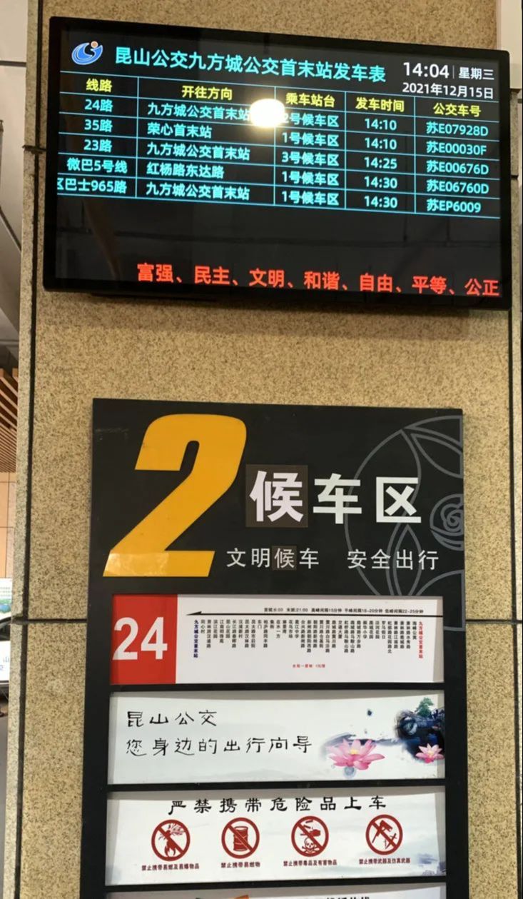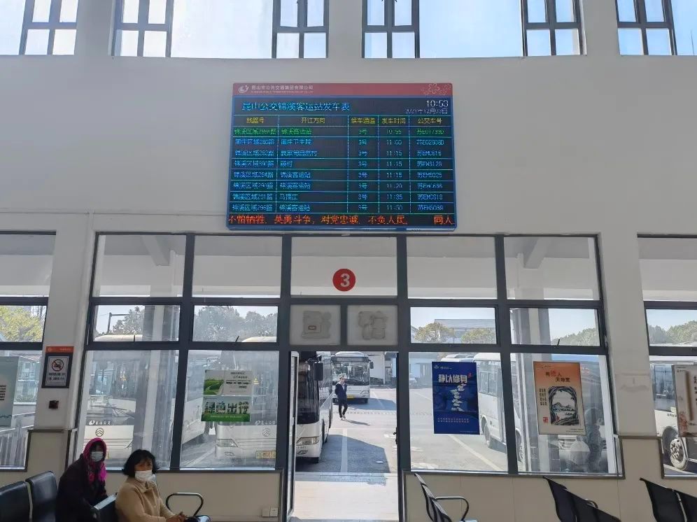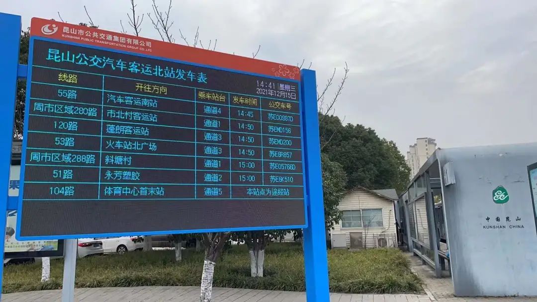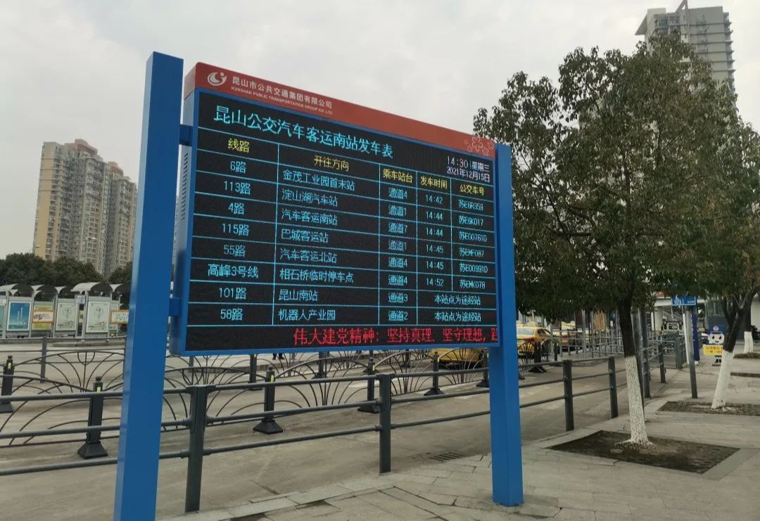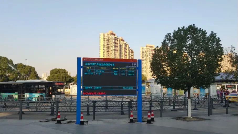 目前昆山公交已于火车站南广场、汽车客运南站、汽车客运北站、锦溪客运南站、九方城首末站等5个枢纽站安装发车信息屏,为市民提供公交发车班次、候车时间、等待通道等实时信息,方便乘客在候车过程中及时掌握公交信息,合理安排出行线路,提高乘车出行效率。