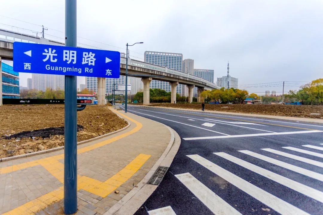 改造后的道路路面平整、路幅宽敞,行车舒适度明显提高,机非混行的交通安全隐患也得以消除。同时,光明路与绿地大道实现了贯通,为周边的交通出行提供了极大便捷。
