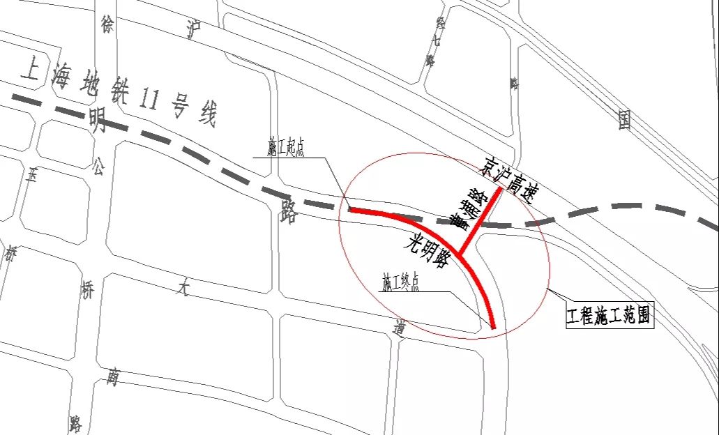 光明路是花桥经济开发区重要道路,交通流量大。其中,梅浦河至商湖路段原为老大年路、曹浦路路段,该段道路路面狭窄、机非混行、路面破损,由此带来较大的交通压力和安全隐患,暴雨期间因排水系统不完善导致路面积水严重,给居民出行带来极大不便。