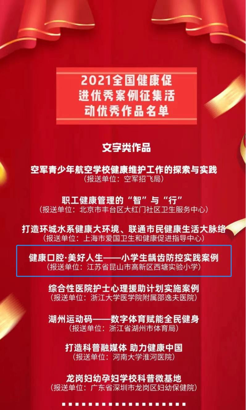 昆山西塘实验小学龋齿防控实践获评全国优秀案例