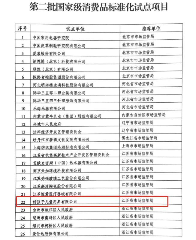 昆山“好孩子”获批成为国家级消费品标准化试点企业,为苏州首家!