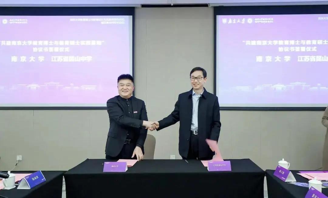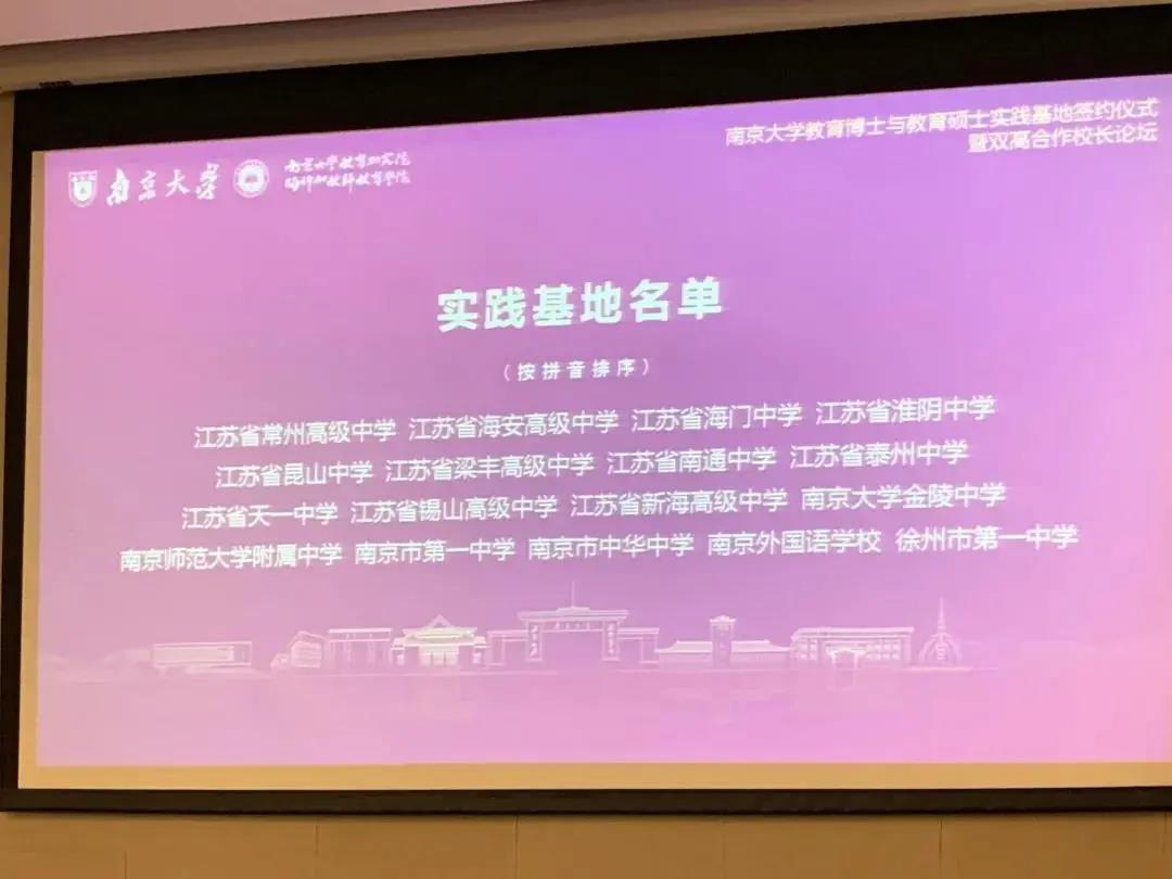12月22日,为探索高等教育与基础教育联动的长效机制,培养新时代高素质中学教师,南京大学教育博士与教育硕士实践基地签约仪式以及高校-高中合作(简称“双高合作”)校长论坛在南京大学仙林校区召开,南京大学副校长王志林,南京市教育局副局长祁寿东,省内17所重点高中校领导出席签约仪式,昆山中学徐晓林校长、教务处张红俊副主任应邀出席会议。