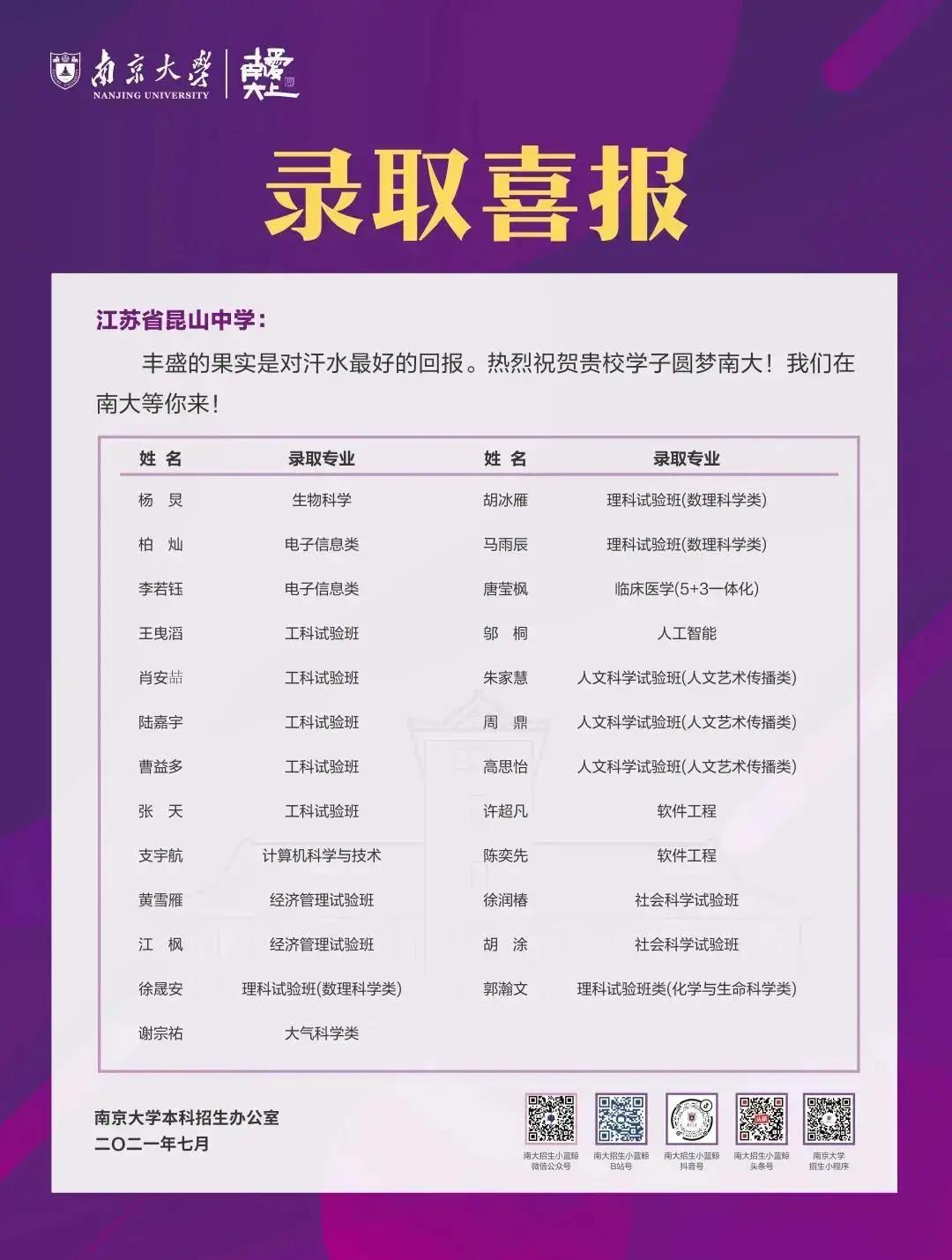 近年来,作为南京大学优秀生源基地,昆山中学培养了100多名传是学子问道南大!