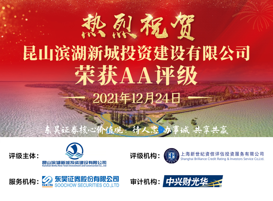 12月24日,国内权威评级机构上海新世纪资信评估投资服务有限公司授予昆山滨湖新城投资建设有限公司(以下简称滨湖新城公司)AA级主体信用等级。滨湖新城公司成为全市第8家AA级以上市属国企。从注册登记到获得“AA”评级,时间跨度只有短短半年,滨湖新城公司在全市国企主体信用评级中创造了一项用时最短纪录,充分体现了资本市场对公司整体实力、战略管理和发展前景的认可,标志着滨湖新城公司资本运作能力迈上了新台阶,为进一步拓展融资渠道、优化融资结构、降低融资成本奠定坚实基础,更为锦淀周一体化发展和昆山旅游度假区打造长三角一体化示范区协调区、江南文化样板区,共建世界级湖区,注入了强劲“动力源”。